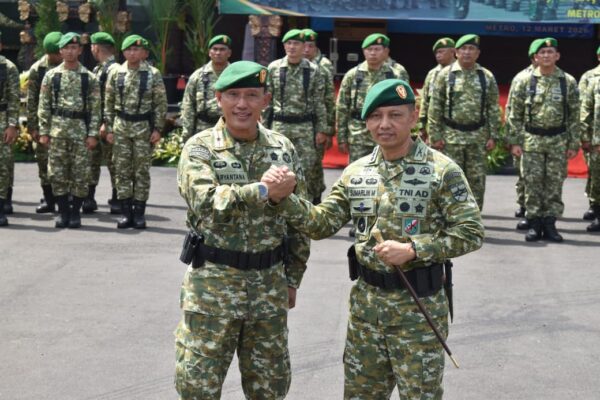 Tradisi militer tersebut menjadi bagian dari rangkaian serah terima jabatan Danrem 043/Gatam yang sebelumnya telah dilaksanakan di Aula Pamungkas Korem 043/Gatam, Kota Metro, Kamis (12/3/2026).